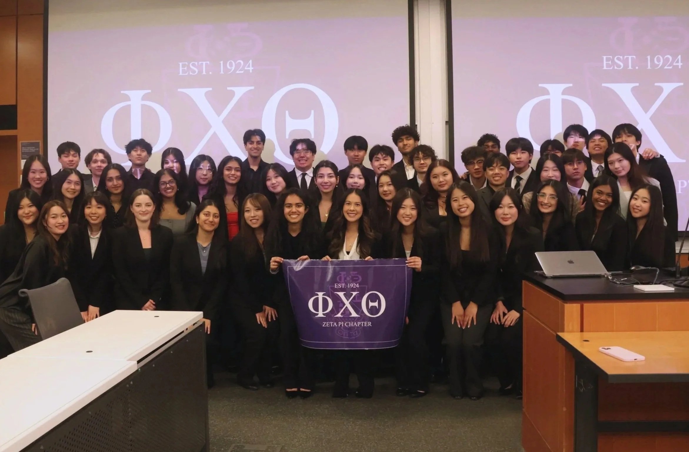 The Zeta Pi chapter of Phi Chi Theta was founded at the University of Washington on December 3, 2016. As of the beginning of the 2024–2025 academic year, we currently have 40 active members and expect 28 new members to join each year.